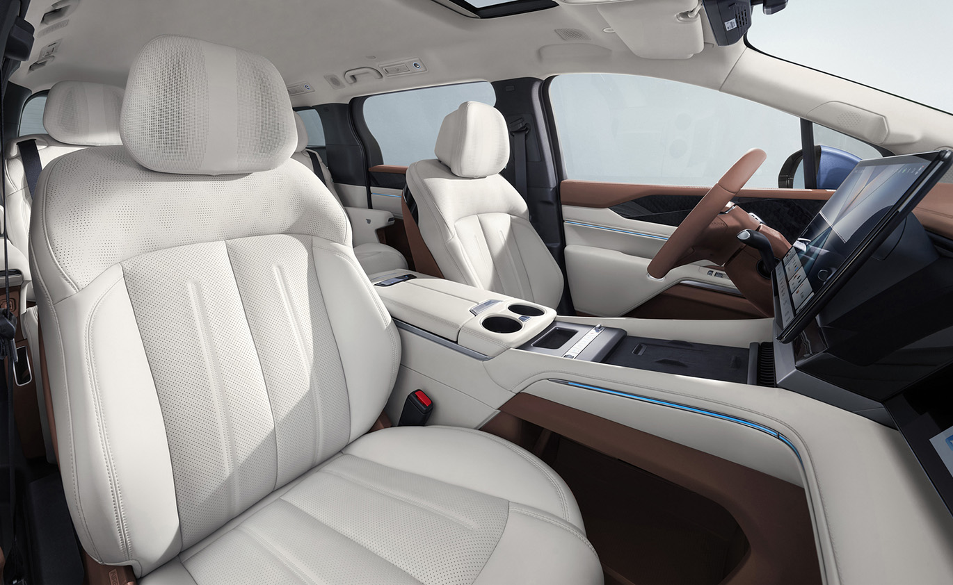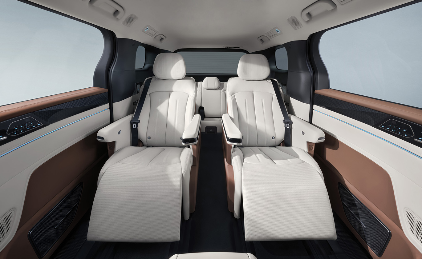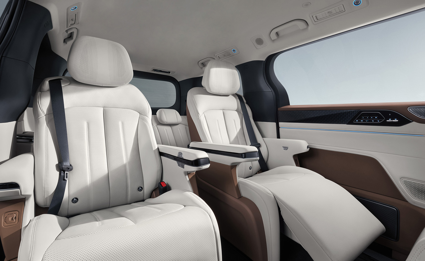 Ghế ngồi đều được bọc da cao cấp với thiết kế công thái học, tích hợp đầy đủ tính năng làm mát, massage đa điểm, mang đến trải nghiệm thoải mái ở mọi hành trình. Đặc biệt, hàng ghế giữa được ví như “ghế thương gia hạng nhất trên không”, với ghế ngồi khả năng điều chỉnh điện 4 hướng tích hợp nhớ vị trí, điều chỉnh bệ đỡ chân, hệ thống đệm linh hoạt cùng tính năng massage 10 điểm, bàn gấp tiện dụng giúp hành khách tận hưởng sự êm ái vượt trội. Ngoài ra, khu vực này còn được trang bị sẵn tủ lạnh, mang đến trải nghiệm tiện dụng hơn bao giờ hết.