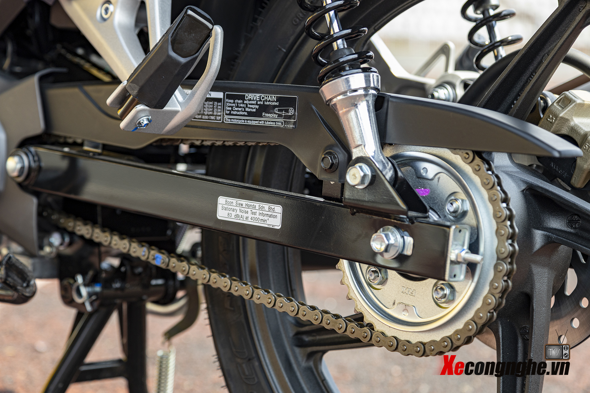Xe sử dụng mâm đúc kích thước nhỏ, đi kèm lốp bản vừa phải, giúp tổng thể xe trông thanh thoát nhưng vẫn đảm bảo độ bám đường. Khoảng sáng gầm và chiều cao yên ở mức hợp lý, phù hợp với nhiều đối tượng người dùng.