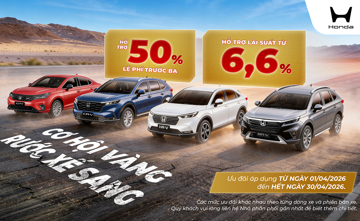 Với mong muốn mang đến nhiều hơn nữa cơ hội trải nghiệm các mẫu xe ô tô Honda, Honda Việt Nam (HVN) phối hợp cùng hệ thống Nhà Phân phối triển khai chương trình khuyến mại hấp dẫn từ ngày 01/04/2026 đến hết ngày 30/04/2026.