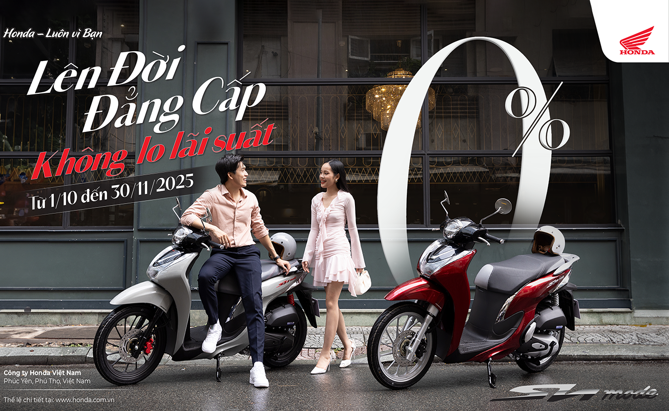 Nhằm nâng cao cơ hội trải nghiệm và sử dụng mẫu xe Sh mode cho khách hàng, HVN triển khai CTKM “Lên đời đẳng cấp – Không lo lãi suất” với hỗ trợ lãi suất trả góp 0% dành riêng cho khách hàng khi mua xe Sh mode từ ngày 01/10/2025 đến hết ngày 30/11/2025. Đây là chương trình khuyến mại hấp dẫn nhất từ trước tới nay dành riêng cho khách hàng mua Sh mode, lần đầu tiên khách hàng có cơ hội lên đời xe sang mà không phải lo về lãi suất.