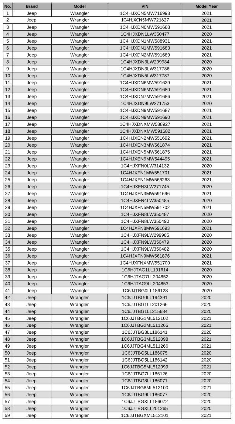 JVA TP.HCM (JVA), nhà nhập khẩu và phân phối ủy quyền chính thức thương hiệu Jeep - RAM tại Việt Nam, vừa phát đi thông báo triệu hồi hai dồng xe Jeep Wrangler 2018 - 2022 (JL) và Jeep Gladiator 2020 - 2022 (JT) do liên quan đến đèn cảnh báo trên cụm đồng hồ táp-lô.