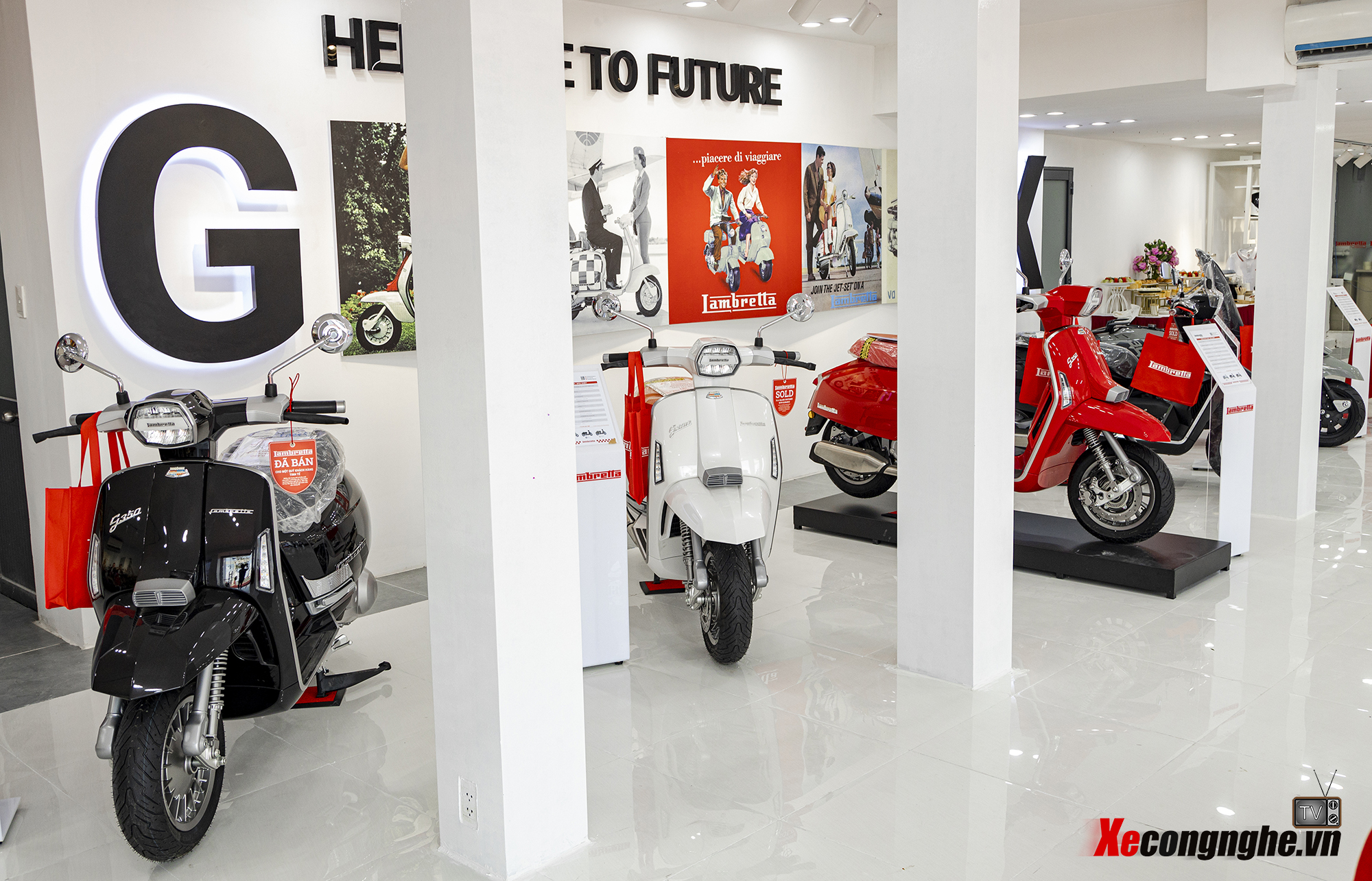 Khu vực trưng bày giới thiệu nhiều dòng xe như X125, X300 hay G350 – những sản phẩm chủ lực của Lambretta tại Việt Nam. Đây đều là các mẫu xe mang thiết kế hoài cổ đặc trưng nhưng được nâng cấp công nghệ hiện đại, hướng đến nhóm khách hàng yêu phong cách cá tính và khác biệt.