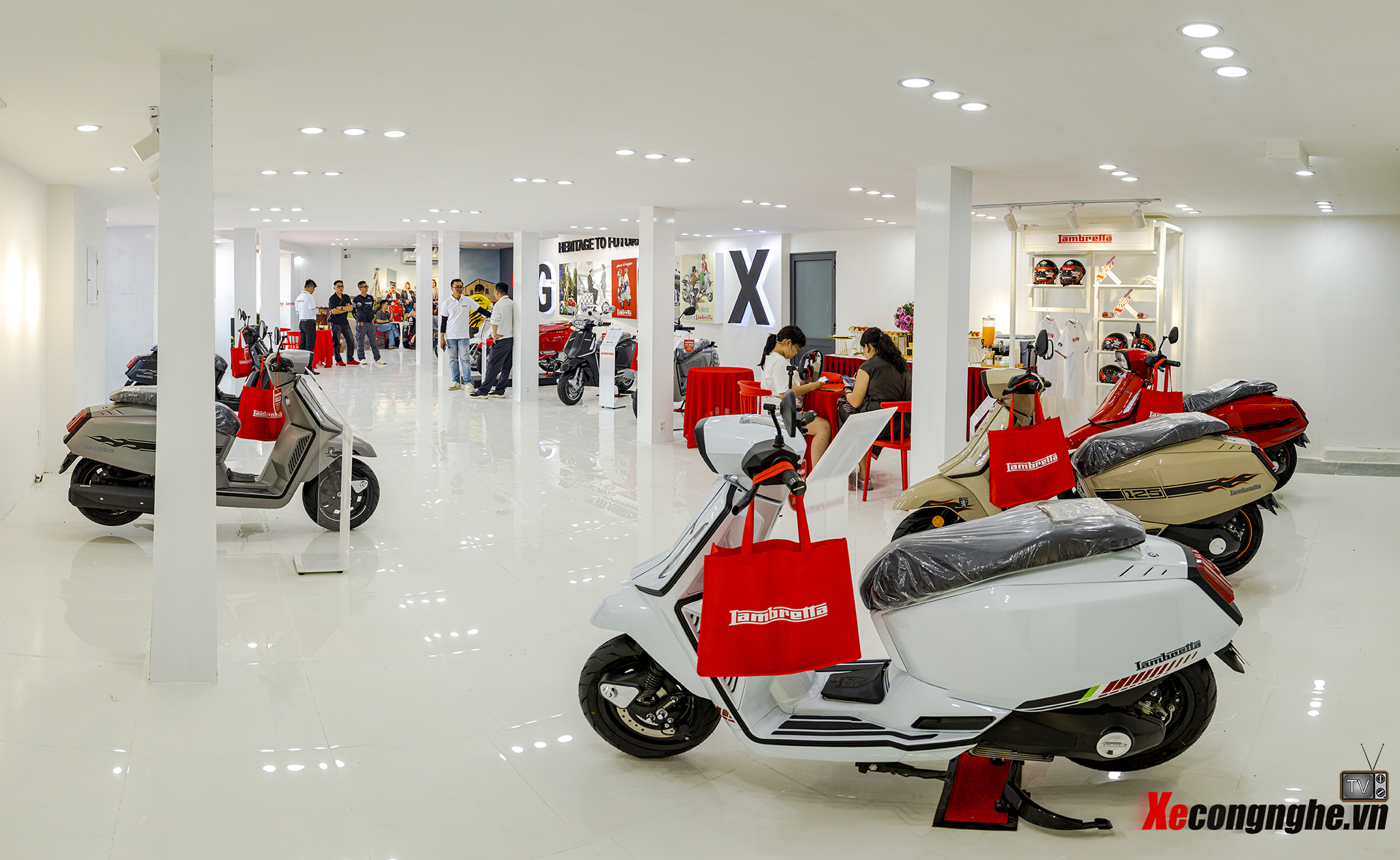 Theo ghi nhận tại sự kiện, Showroom được thiết kế theo tiêu chuẩn 3S (Sales – Service – Spare parts), với không gian rộng rãi, bố trí tối giản nhưng tinh tế. Các mẫu xe Lambretta được trưng bày nổi bật trong không gian trắng sáng, kết hợp ánh sáng showroom chuyên nghiệp, mang lại trải nghiệm gần gũi với phong cách châu Âu.