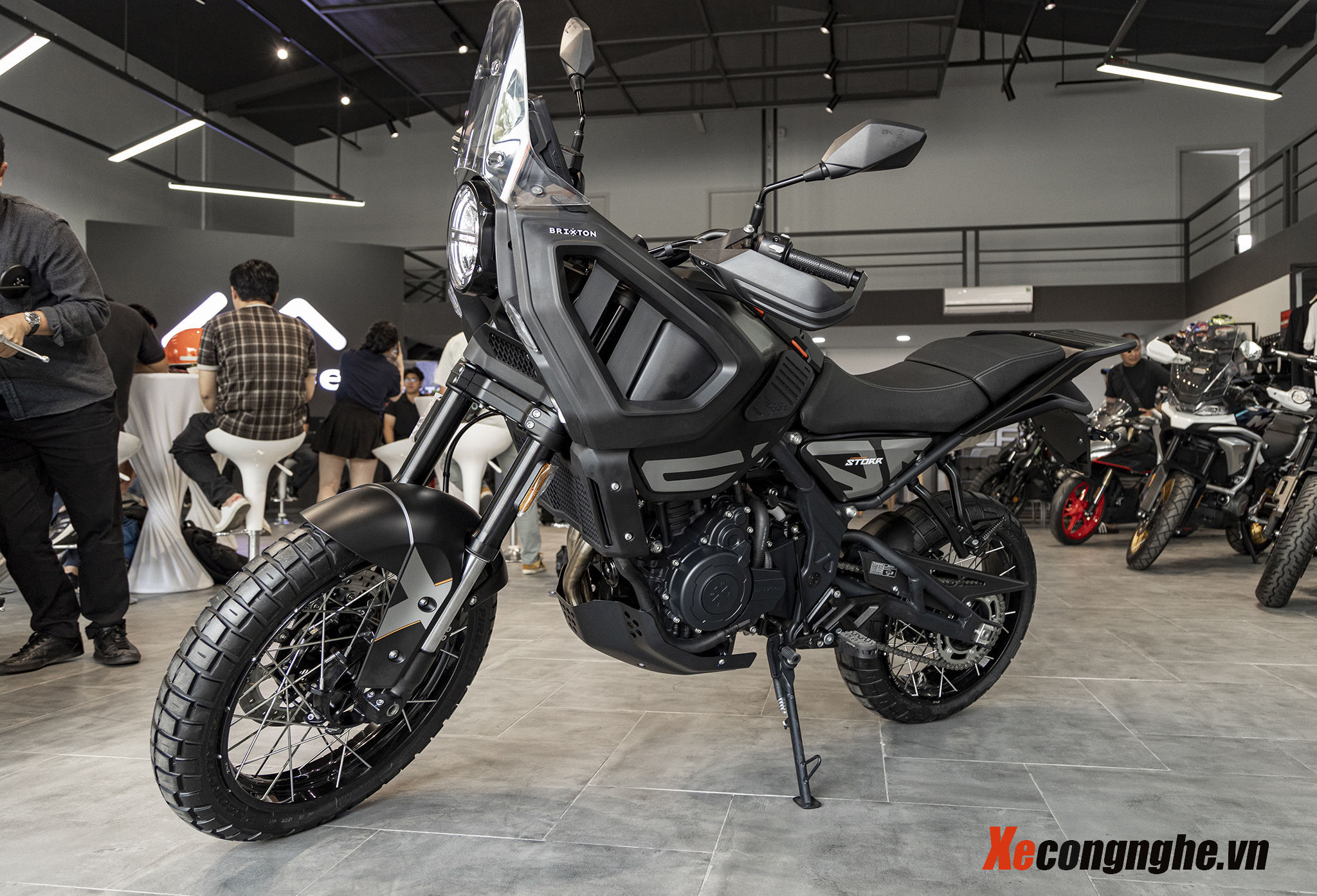 Bên cạnh dòng classic, Mforce cũng giới thiệu Brixton Storr 500 – mẫu mô tô thuộc phân khúc adventure tầm trung, hướng đến khả năng di chuyển linh hoạt cả trong đô thị lẫn off-road nhẹ.