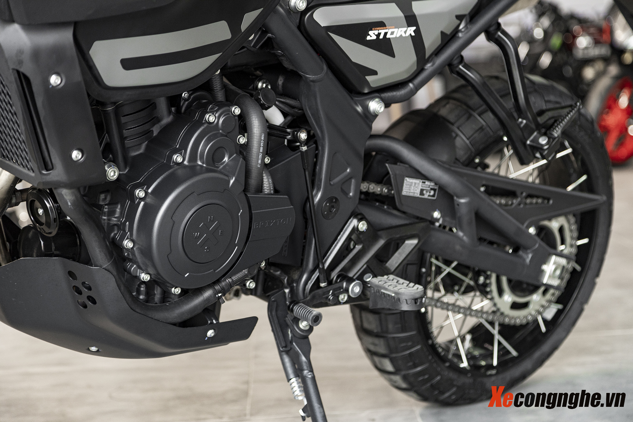 Brixton Storr 500 được trang bị động cơ hai xi-lanh dung tích khoảng 486 cc, hộp số 6 cấp, tối ưu khả năng vận hành cân bằng giữa sức mạnh và tiết kiệm nhiên liệu. Mô-men xoắn được tinh chỉnh để phù hợp với các hành trình dài và địa hình hỗn hợp.