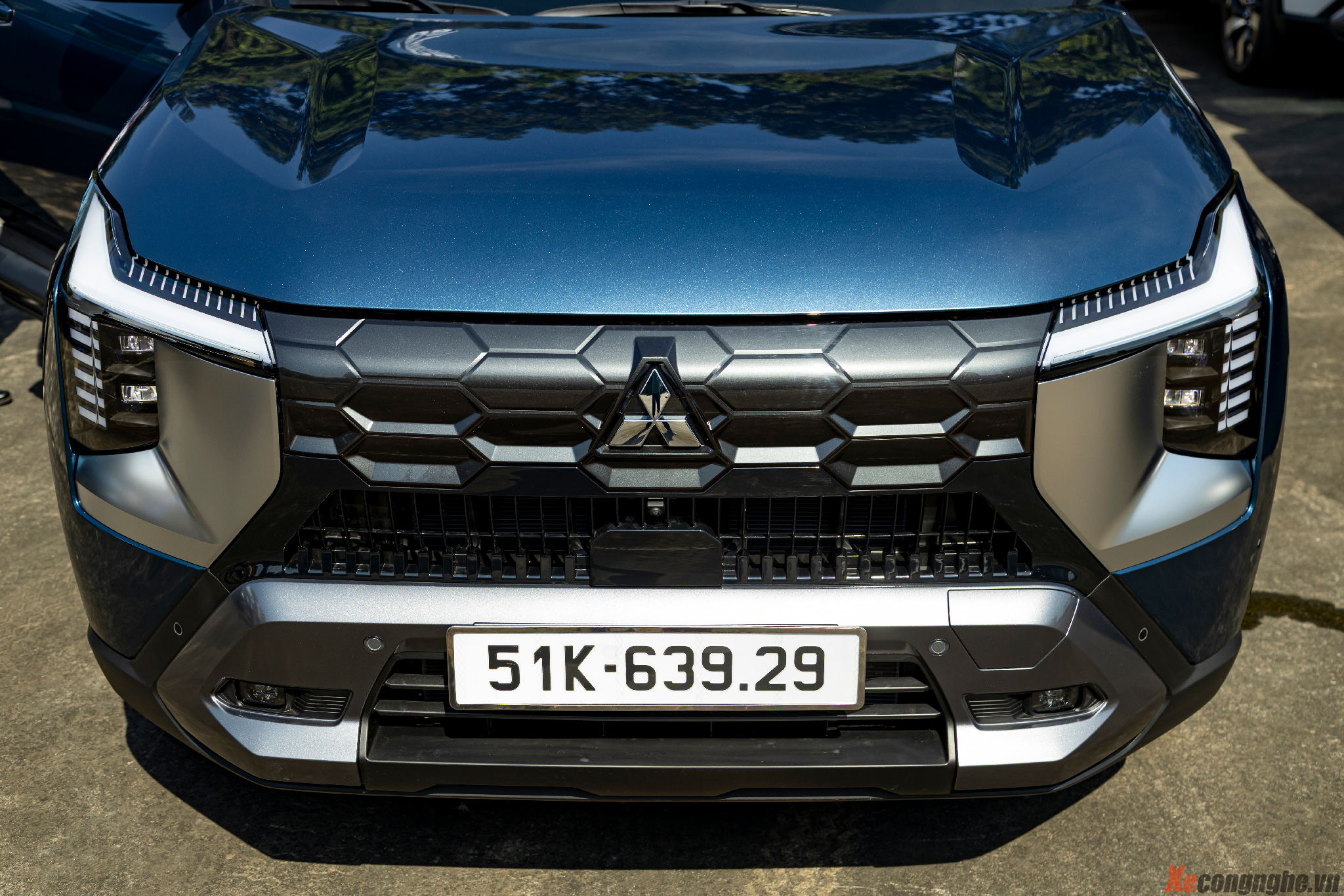 Đầu xe nổi bật với ngôn ngữ thiết kế đặc trưng Dynamic Shield và tạo hình theo phương ngang thanh thoát, đầy đặn, mang đến vẻ ngoài bề thế và uy lực. Lưới tản nhiệt thiết kế đa tầng họa tiết tổ ong được đặt dưới lớp acrylic trong suốt, tích hợp liền mạch với hai bên cản trước tạo nên hiệu ứng thị giác ấn tượng và diện mạo hiện đại. Cụm đèn LED hình chữ T đặc trưng vừa tạo điểm nhấn vừa tăng khả năng nhận diện cho xe.