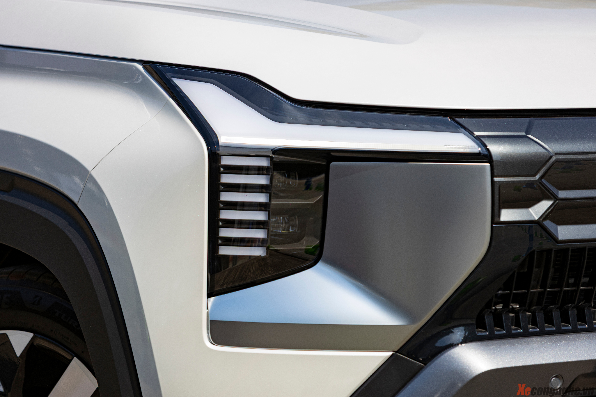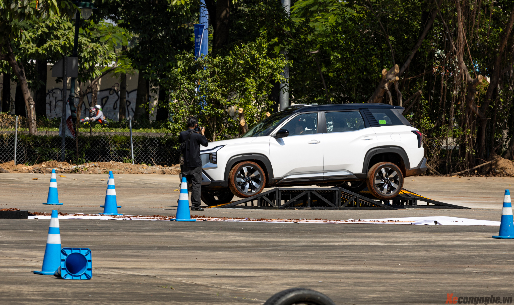 Khoảng sáng gầm xe cao 214 mm, mâm xe 18 inch và góc tới – góc thoát tối ưu, giúp xe dễ dàng vượt qua các chướng ngại vật. Các đường nét dập nổi cơ bắp, mạnh mẽ và vững chãi. Cột C với họa tiết chạm khắc hình bậc thang độc đáo, một điểm nhấn thể thao trong thiết kế tổng thể, Góc tiếp cận 21.0o và góc thoát 25.5.