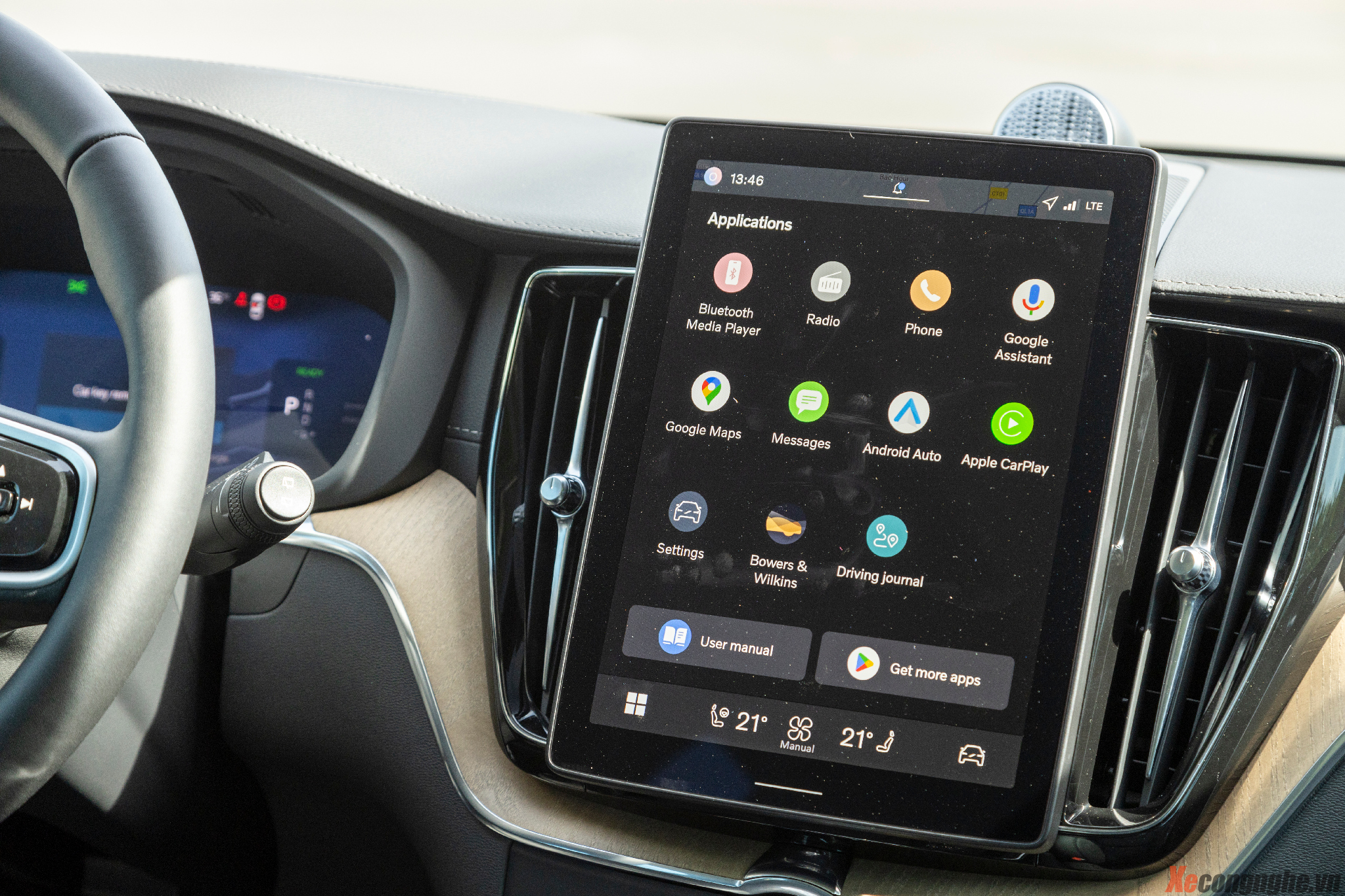 Thắt dây an toàn và vào số D, XC60 phiên bản PHEV chỉ sử dụng động cơ điện cho việc xuất phát khi chúng ta để xe ở chế độ lái mặc định là Hybrid, tất nhiên bạn có thể chọn rất nhiều chế độ giữa xăng và điện ở mẫu xe này nhưng nếu trong đô thị động đúc mà chúng ta sử dụng điện không chỉ giúp xe di chuyển mượt mà và êm ái hơn mà còn bảo vệ môi trường sống xanh hơn. Kết hợp với động cơ điện này và kích thước vừa phải của mình đã giúp cho chúng tôi di chuyển trong đô thị vào giờ cao điểm buổi sáng một cách không thể nhẹ nhàng và thoải mái hơn.