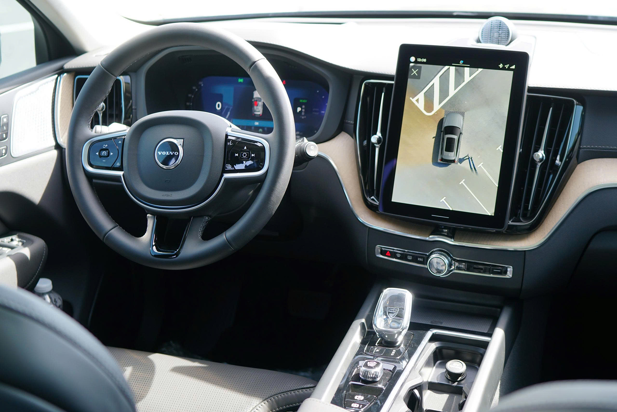 Vô-lăng bọc da tổng hợp được hoàn thiện thủ công tỉ mỉ, đi cùng logo mới hiện đại. Volvo XC60 có thêm lựa chọn mới về chất liệu ghế: Quilted Nordico là một loại da tổng hợp, được tạo nên từ vật liệu tái chế có nguồn gốc sinh học tại những khu rừng Thụy Điển và Phần Lan, mang vẻ trang nhã, mềm mại. Trong khi đó, da Nappa vốn có vẫn là một lựa chọn êm ái, dễ chịu cùng hệ thống làm mát tích hợp vẫn được trang bị trên phiên bản PHEV.