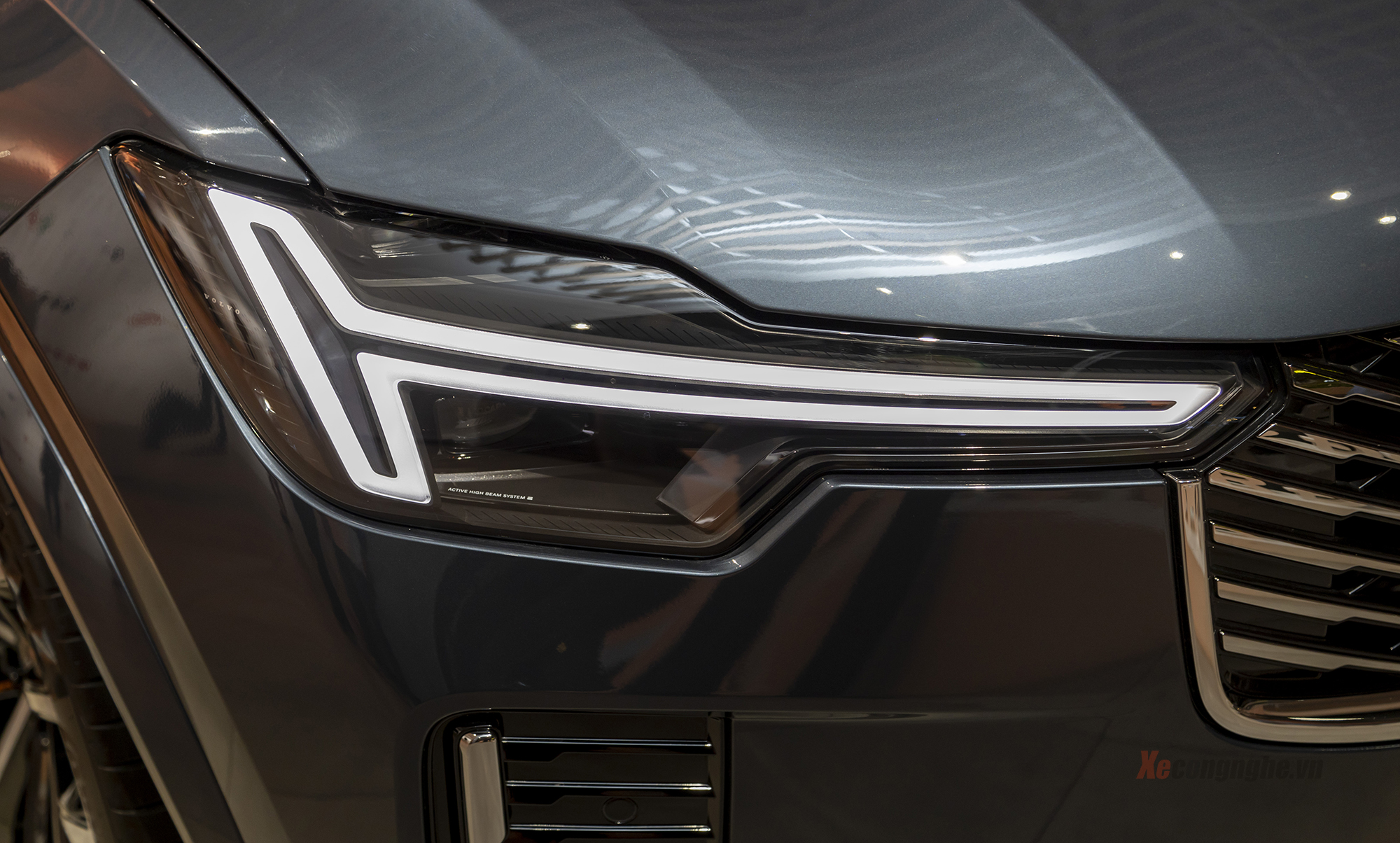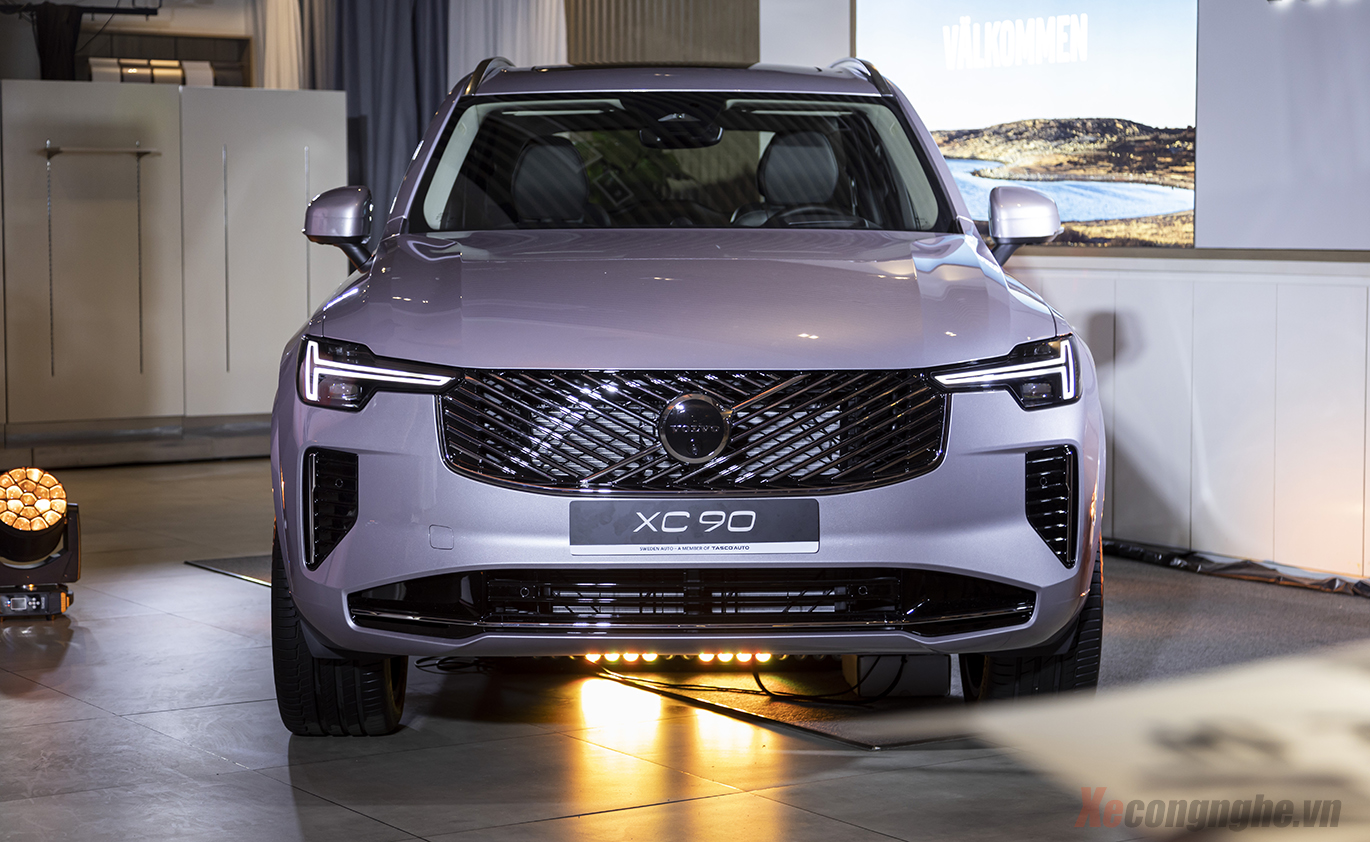 Ở lần nâng cấp này, XC90 được làm mới rõ nét ở phần đầu xe với lưới tản nhiệt họa tiết đan chéo mới, cản trước và nắp ca-pô tái thiết kế. Cụm đèn LED “búa Thor” đặc trưng được tinh chỉnh mảnh hơn, tích hợp công nghệ Matrix LED 15 vùng chiếu, cho khả năng chiếu sáng thích ứng và tối ưu tầm nhìn ban đêm.
