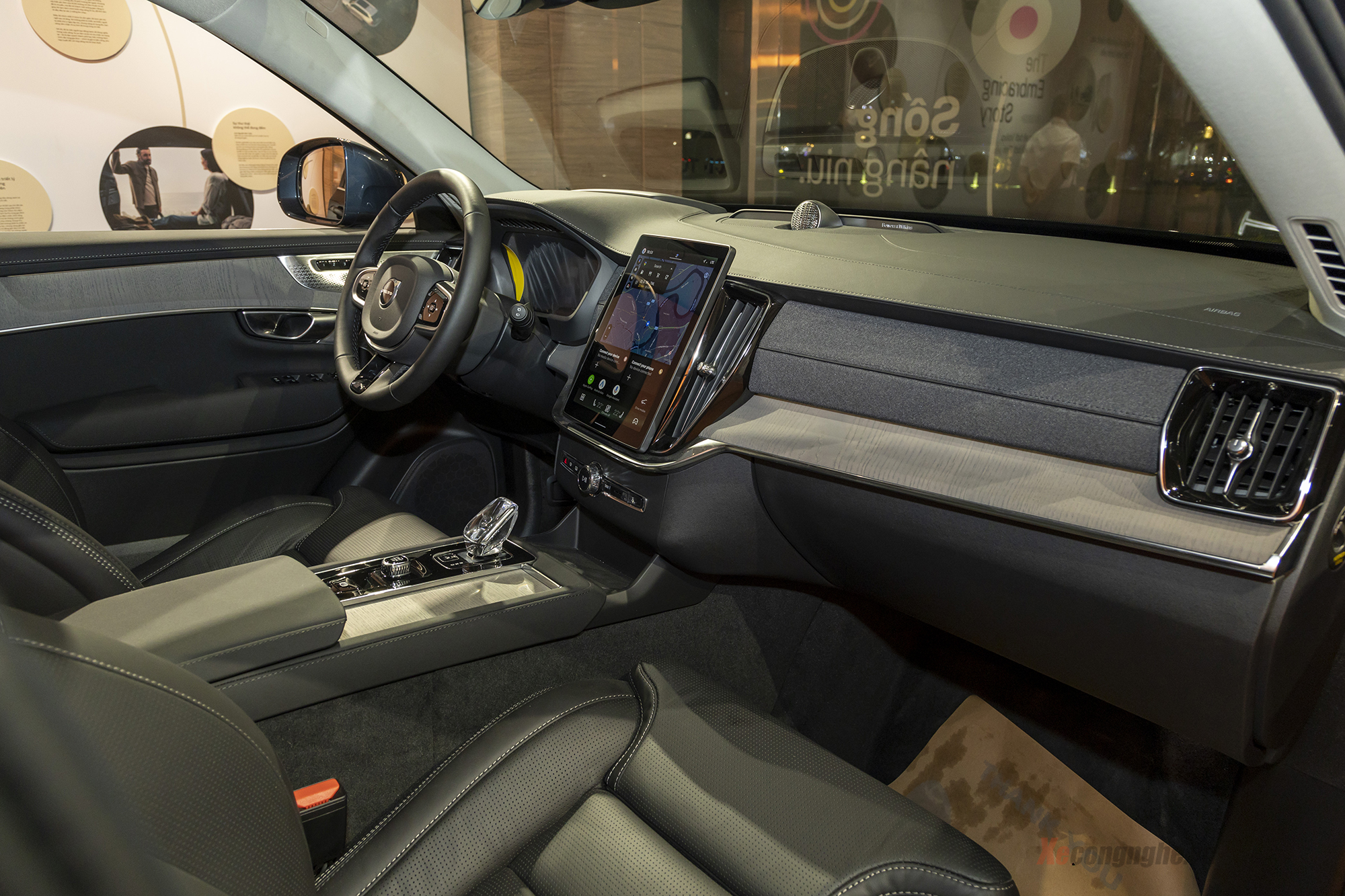 Bên trong, khoang nội thất được nâng cấp với màn hình trung tâm 11,2 inch độ phân giải cao, giao diện Volvo Car UX mới trực quan hơn, thiết kế dọc đặc trưng, độ phân giải cao 1.152 x 1.536 pixels cùng lớp phủ chống chói LFC (Light Control Film) tiên tiến, mọi thông tin đều được truyền tải sắc nét trong bất kỳ điều kiện ánh sáng nào.