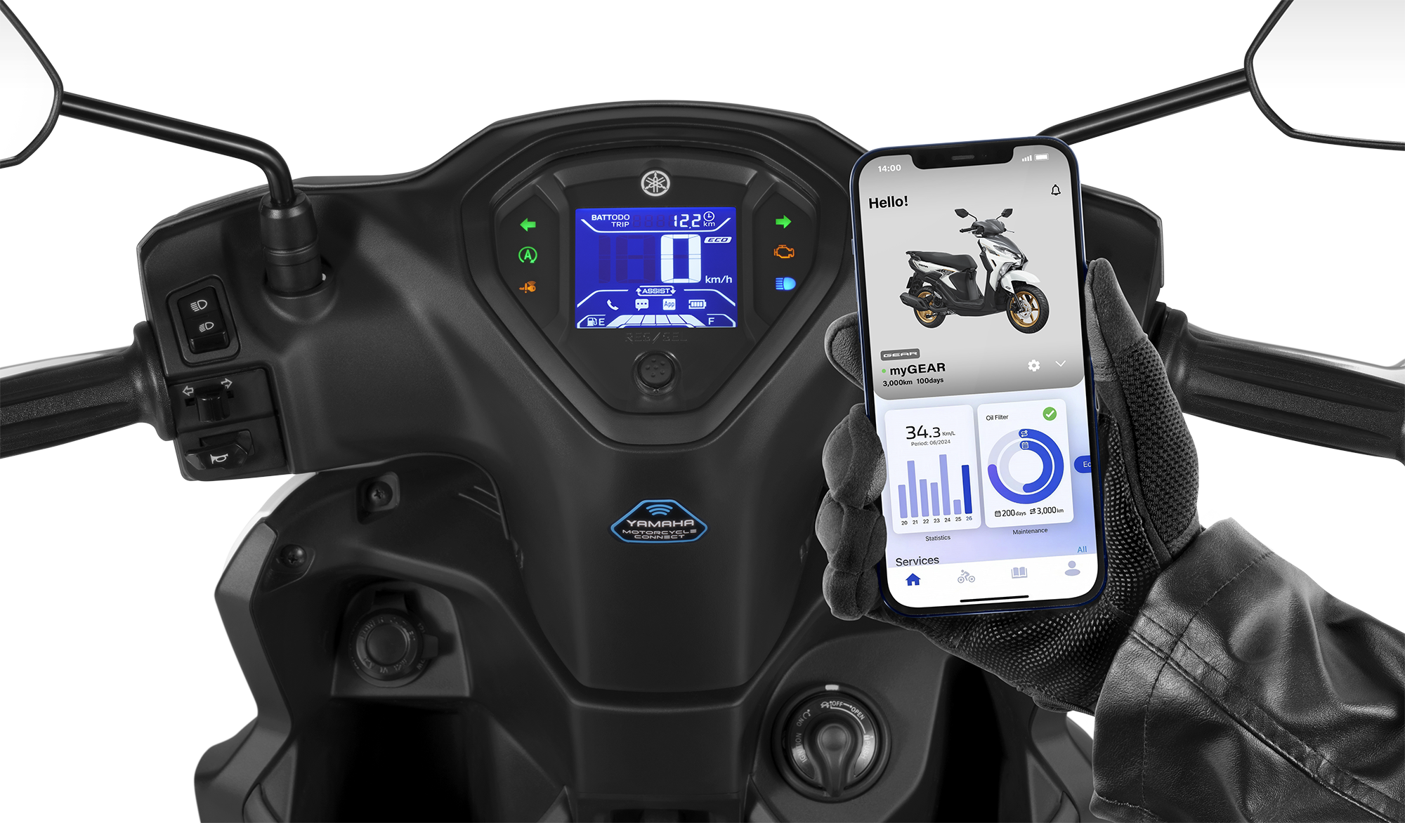 Với Y-ON, người dùng có thể: Nhận thông báo cuộc gọi, tin nhắn ngay trên đồng hồ xe, theo dõi mức tiêu thụ nhiên liệu theo tháng, nhận nhắc nhở thay dầu, bảo dưỡng định kỳ, xác định vị trí đỗ xe gần nhất, ghi lại hành trình di chuyển/